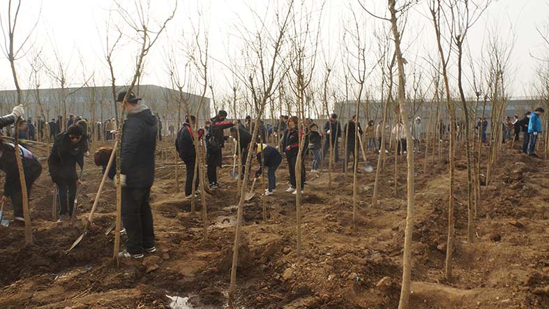 全體參加植樹活動的員工準(zhǔn)時(shí)到位,在結(jié)束了短暫的人員組隊(duì),劃分區(qū)域和領(lǐng)取工具等準(zhǔn)備工作后,迅速的投入到植樹活動當(dāng)中。各小組成員分工明確,積極踴躍。很多隊(duì)伍在組長的帶領(lǐng)下,領(lǐng)樹苗、放樹苗、填土、培土、澆水相互配合,干得熱火朝天。許多小組高效率高質(zhì)量的完成本隊(duì)植樹任務(wù)后,迅速投入到其他隊(duì)伍中,互幫互助。在全體員工有組織有紀(jì)律的高效協(xié)作的前提下,在不到兩個半小時(shí)的時(shí)間內(nèi),共計(jì)完成1800棵樹苗的栽種工作,綠化面積達(dá)12000多平方米。此次植樹活動,進(jìn)一步改善了控感廠區(qū)的生產(chǎn)環(huán)境,把原本空曠的廠區(qū)西南角的一片空地裝點(diǎn)得煥然一新!