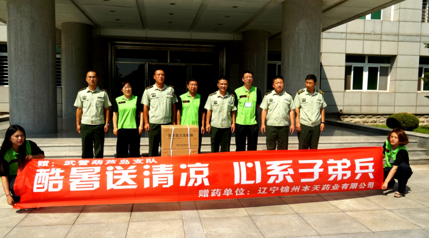 31日公司黨委王書記,本天藥業(yè)質(zhì)量主管裴經(jīng)理與公司營銷中心人員,一起到錦州市武警總隊和葫蘆島市武警總隊進行了擁軍慰問,并向廣大官兵贈送了價值數(shù)萬元的防暑降溫藥品,受到了廣大武警官兵的熱烈歡迎。