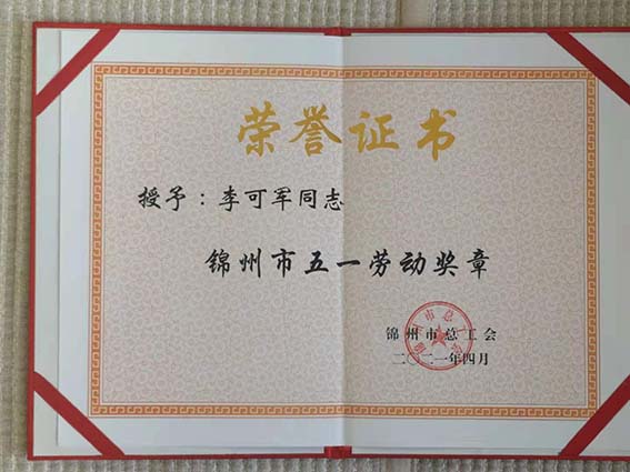 公司董事長李可軍榮獲“錦州市五一勞動(dòng)獎(jiǎng)?wù)隆睒s譽(yù)稱號(hào)