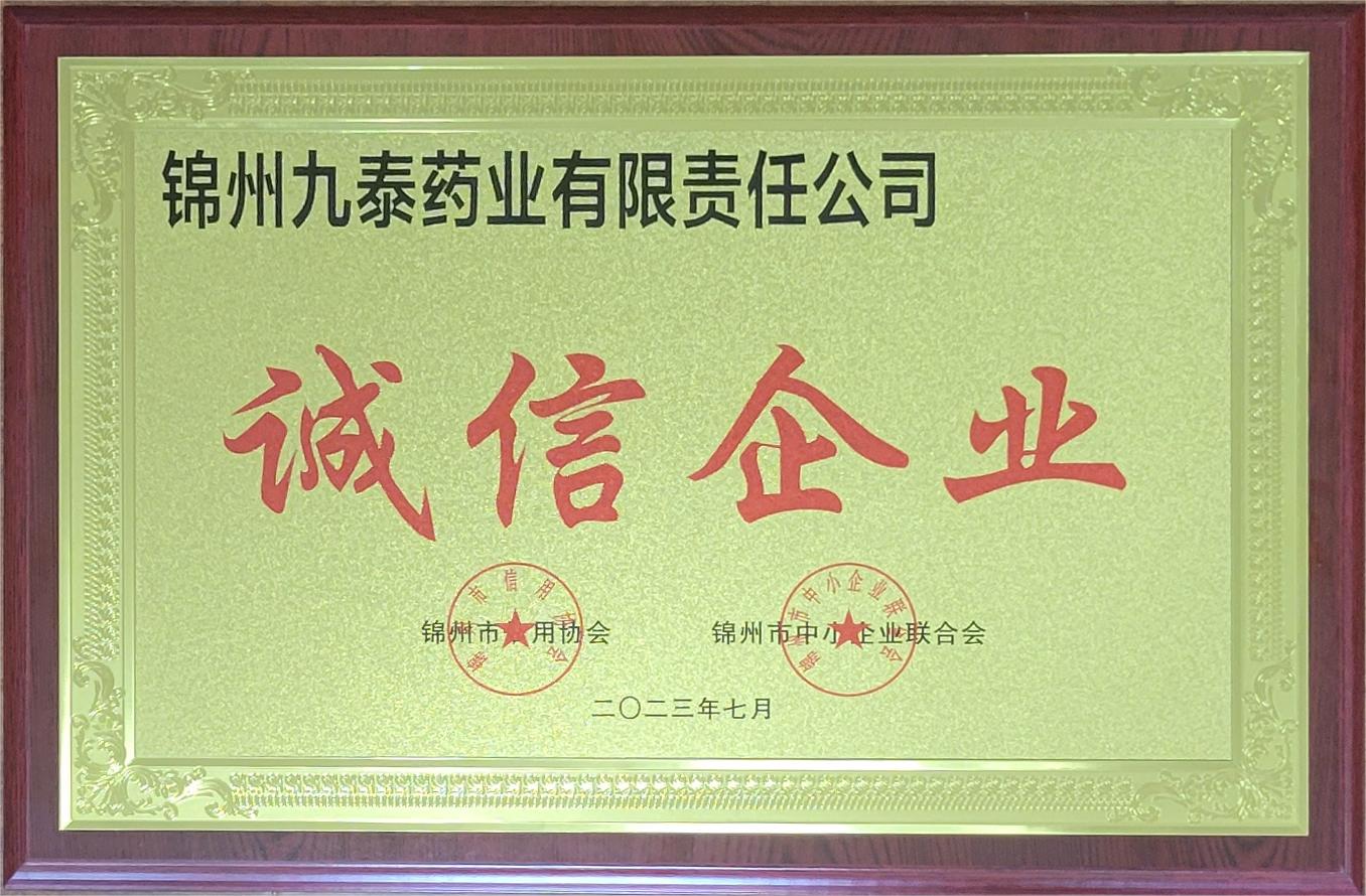 7月17日,在錦州市中小企業(yè)聯(lián)合會、錦州市信用協(xié)會誠信會員企業(yè)表彰大會上,錦州九泰藥業(yè)有限責任公司被命名為“誠信企業(yè)”榮譽稱號。